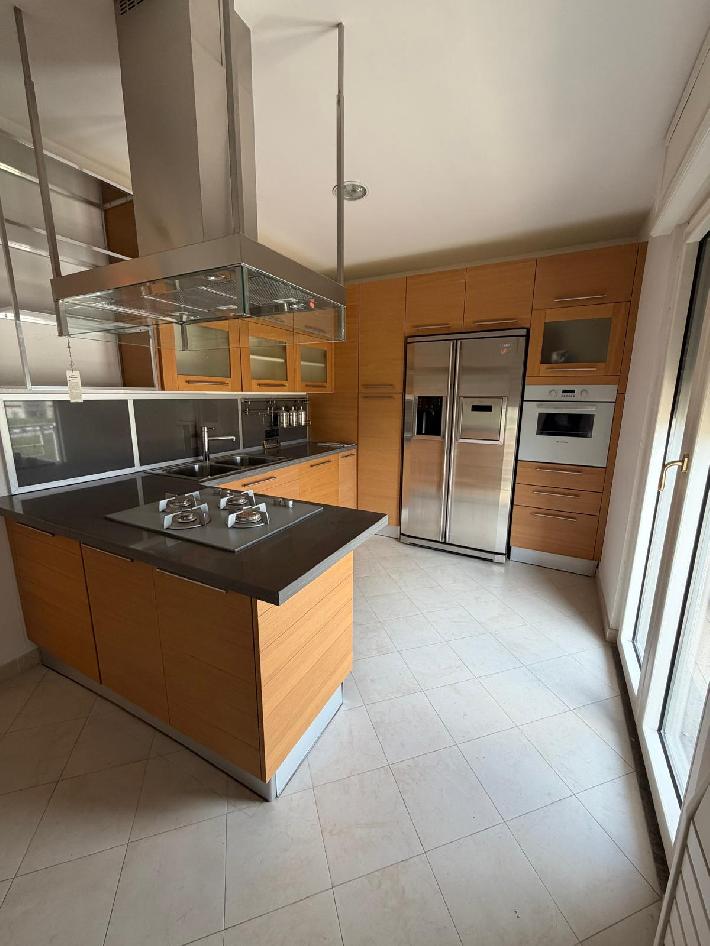 Vi proponiamo una soluzione in stabile di recente costruzione, un elegante attico, con terrazzo panoramico e finiture di pregio, situato in Via dei Longobardi, servito da comodo ascensore e completo di due posti auto. L ingresso, protetto da portone blindato, conduce in un ampio e luminoso soggiorno open space, impreziosito da pavimento in parquet di massello in bambù e dal suggestivo camino Gyrofocus di Dominique Imbert, vero elemento di design. L ambiente è dotato di impianto di aerazione elettrica e predisposizione per una seconda canna fumaria, per eventuale secondo camino o stufa, completa la zona giorno cucina moderna con elettrodomestici di ultima generazione. La zona notte, ben separata, ospita tre camere da letto, tra cui una raffinata suite padronale con cabina armadio e vasca Jacuzzi. Presenti altri tre bagni con porcellanato di prima scelta, dotati di cabina doccia idromassaggio e bagno turco. Fiore all occhiello della proprietà è lo straordinario terrazzo di circa 305 mq, una parte coperta da tettoia in policarbonato su struttura in legno massello, arricchito da fontana in marmo con riciclo dell acqua, impianto di irrigazione con pompa elettrica, argano elettrico per il sollevamento materiali istallato per sollevare legna per il camino, cucina esterna completa di elettrodomestici di alta gamma e forno a legna, inoltre due pratiche cantine di 8 mq. e un ulteriore area esclusiva a servizio dell’appartamento. Altri comfort che caratterizzano la soluzione sono, impianto di climatizzazione con termoconvettori, sistema antifurto elettronico di ultima generazione, videocitofono con comando telefonico, infissi in legno-alluminio a triplo taglio termico con vetri isolanti, impianto di filodiffusione in tutti gli ambienti, aspirapolvere centralizzato con serbatoio esterno. Una soluzione unica e ideale, per chi desidera vivere in città vicino a tutti i servizi, in un contesto esclusivo, con ampi spazi interni ed esterni e dotazioni di alto livello.
